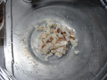 1.ボウルに食パンと牛乳を入れてこねておきます。