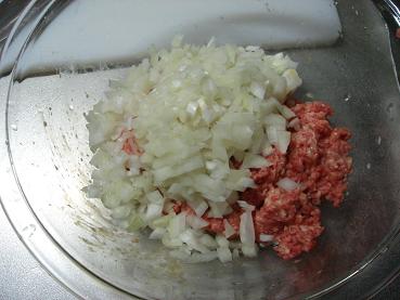 3.1のボウルに、ひき肉とたまごを入れます。