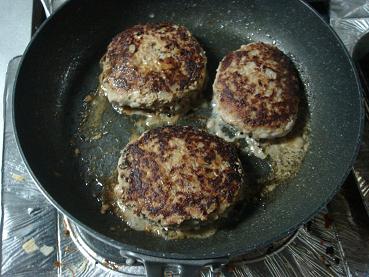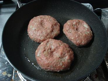 7.フライパンに油をひいてハンバークを焼いていきます。