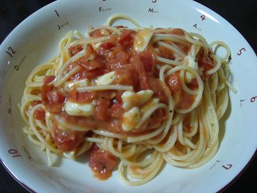 簡単な、トマトとモッツアレラのスパゲティーパスタ