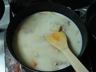 4.仕上げに牛乳を加えてよく混ぜて、