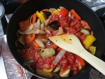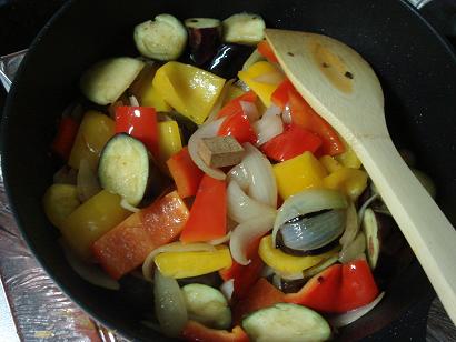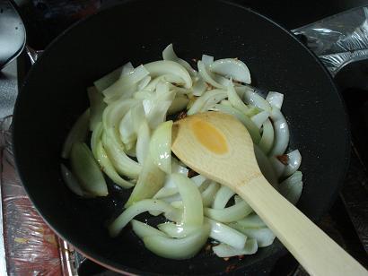 玉ねぎの色が変わるまで煮ます。
