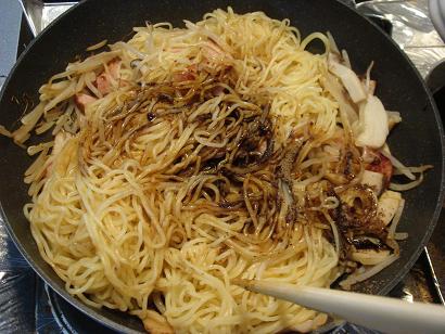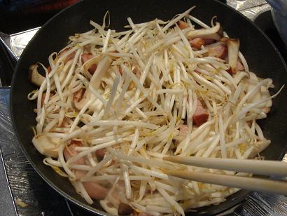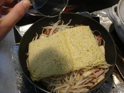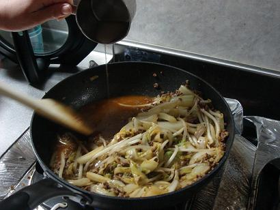 5.全体になじんだら水100ml、チキンスープの素、酒、しょうゆ、