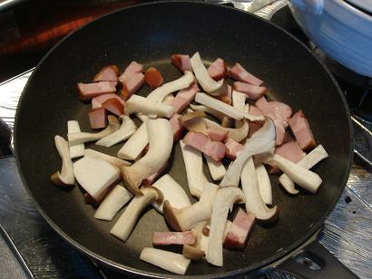 2.フライパンにサラダ油を強火で熱し、ひき肉を炒め、